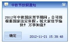 例1:在OA系统中发布放假、活动等通知,发布后在电脑桌面右下角显示弹窗.
