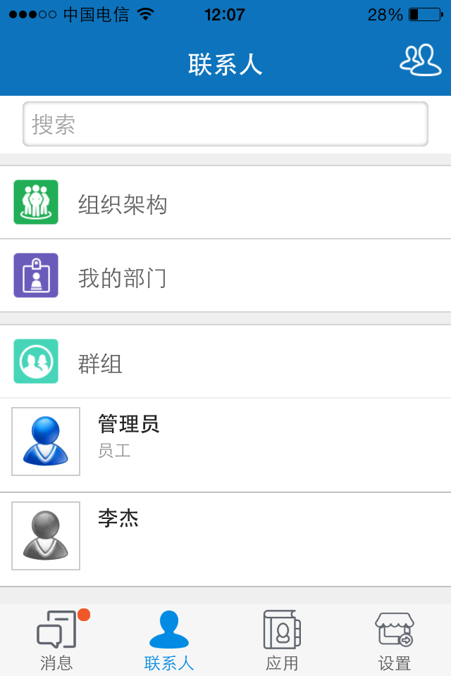 触点通轻办公以组织架构为设计基础,以成员为中心,以插件的形式提供开发接口。在完成企业沟通交流的同时,可以作为企业第三方管理系统如OA、CRM以及其它业务系统的基础平台,实现一站式管控平台。